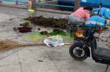 视频:早上去音乐广场海边,看到不少人在海里用专用工具打捞海草(石花