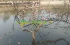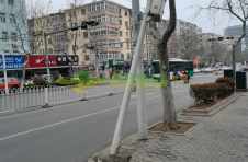 威海路30路车站电线杆歪到在旁边的树上了,谁能扶正?